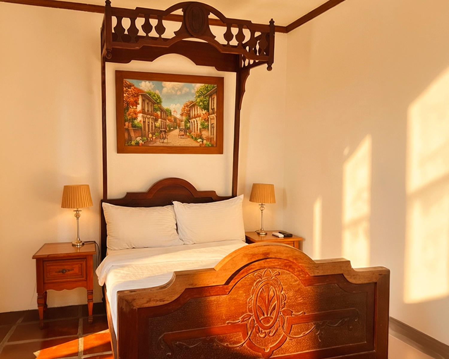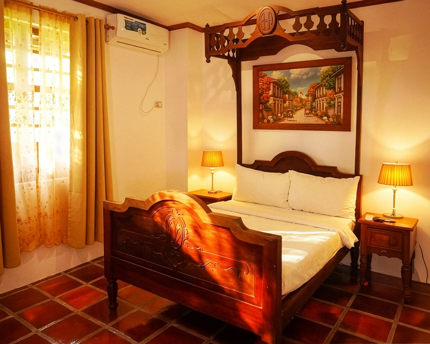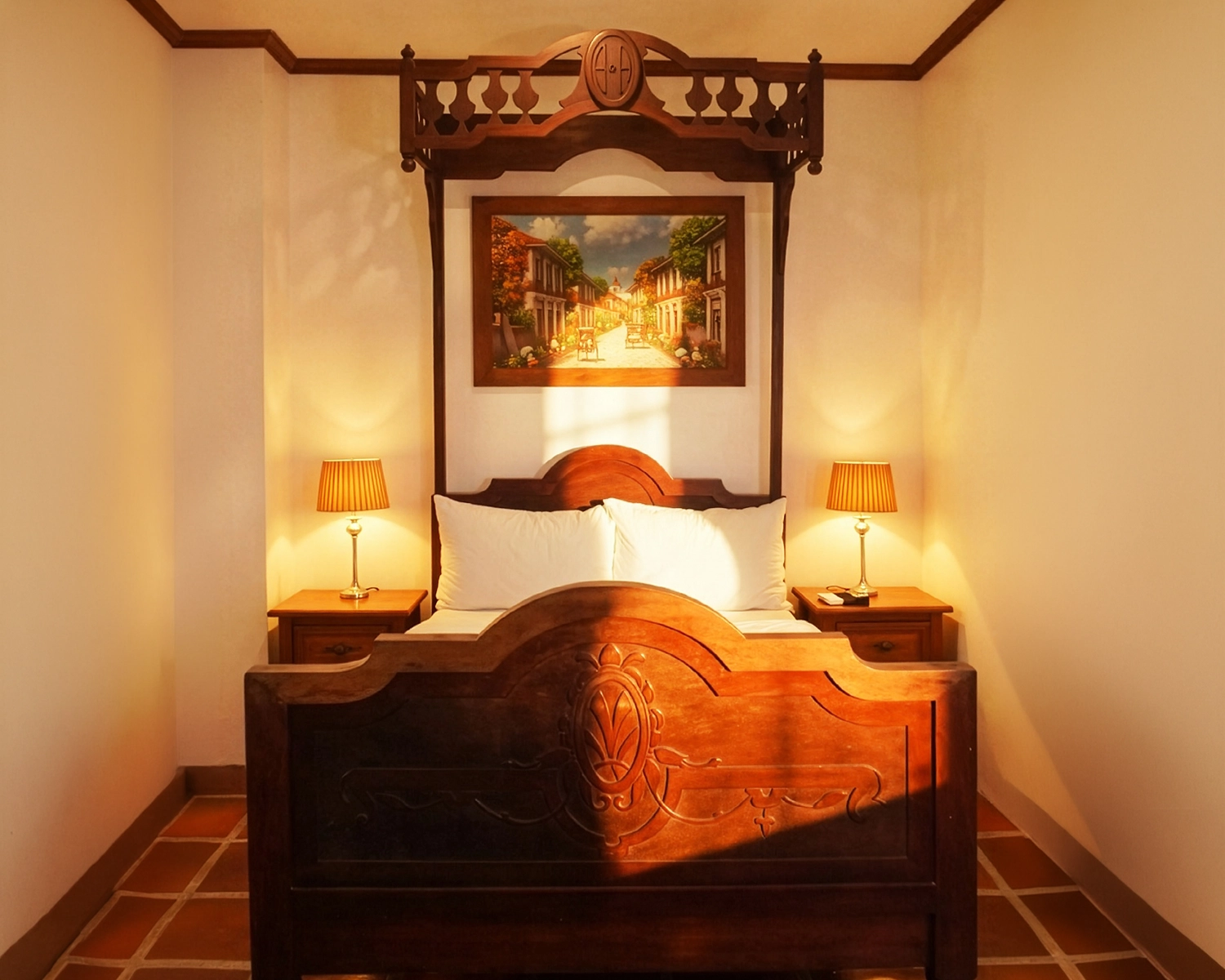 A cozy room with a classic 1 semi-double bed. Elegantly designed rooms with 500 thread count linens and modern facilities such as air-conditioning, WiFi, flat screen TV with cable, in room security safe box, and tea/coffee facilities in room. The bathroom has a hot/cold shower and a wall mounted hair dryer. Towels, shampoo, conditioner, and soap is available in the room. Toothbrushes and slippers are available upon request.